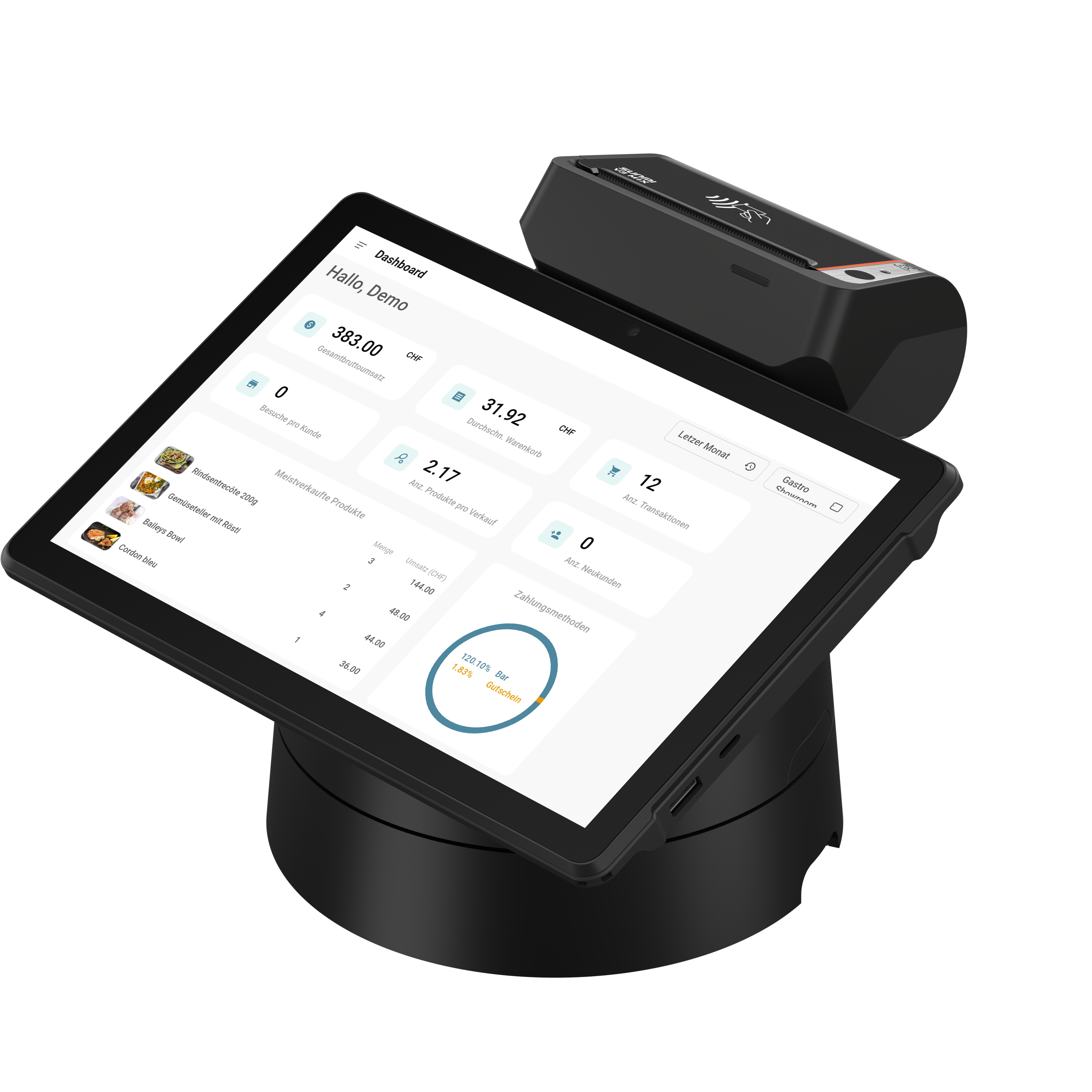 Mit integriertem NFC-Reader ist das Gerät bereit für moderne kontaktlose Zahlungen und SoftPOS-Zahlungslösungen direkt am Display – schnell, sicher und ohne zusätzliches Terminal. Natürlich auch TWINT Zahlungen.