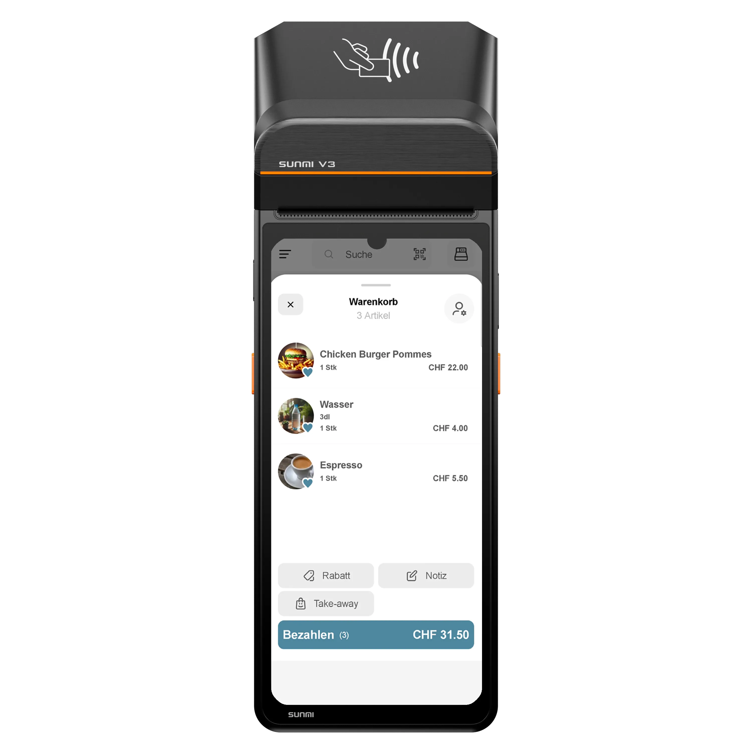 Das SUNMI V3 mit payyap vereint Android-Power, integrierten Bondrucker und mobiles Bezahlen in einem kompakten Gerät – perfekt für Gastronomie, Retail oder Events, bei denen Geschwindigkeit und Flexibilität gefragt sind.